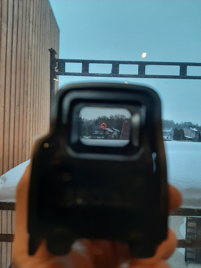 Dobrý den, prodám použitý airsoftový kolimátor typ Eotech stříknutý do ranger green barvy. Červená, zelená barva záměrného kříže, štelování plně funkční. Ke kolimátoru je nabíjecí baterie CR123A stará cca půl roku. Cena 700,- + doprava