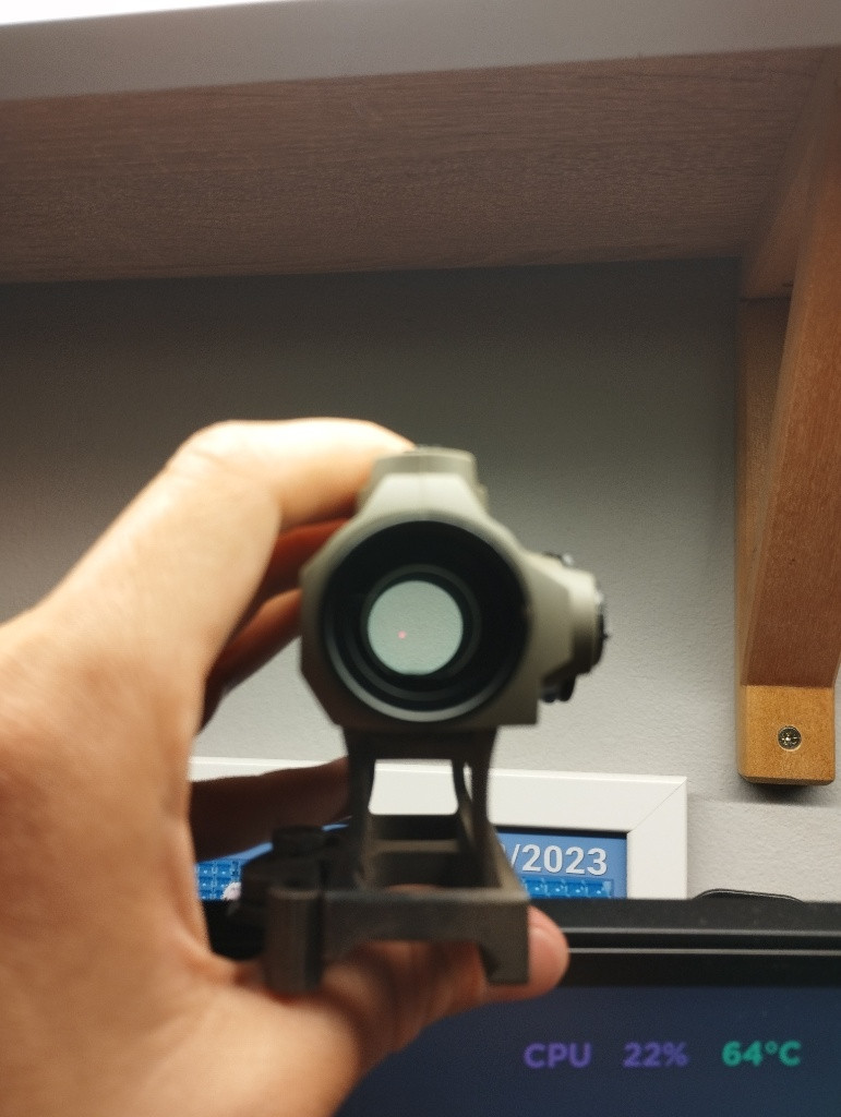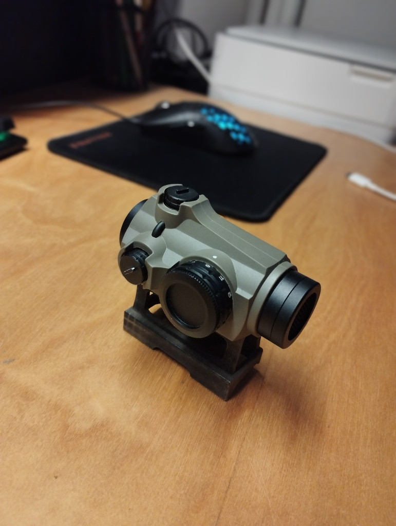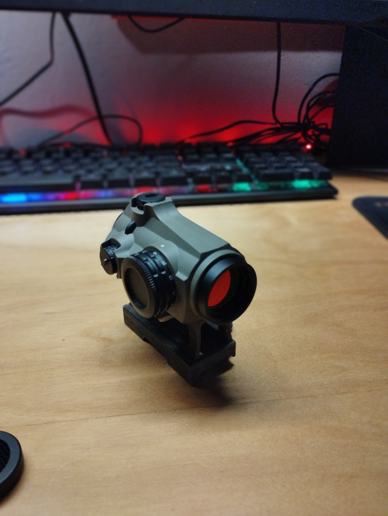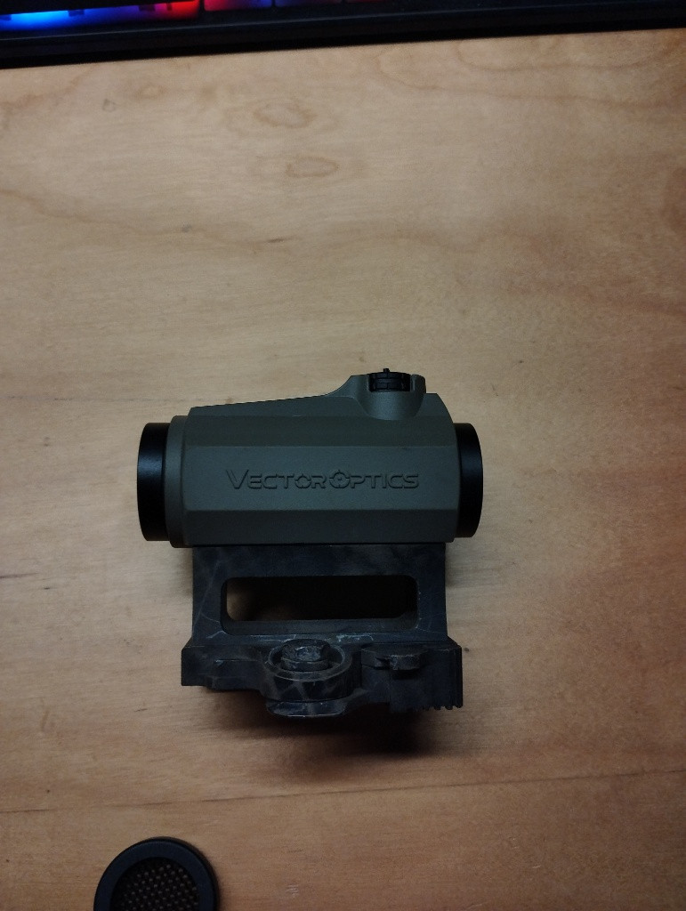 Prodávám kolimator od Vector Optics 1x22. Hrál jsem s ním půl roku (max 5 akci), vždycky ho vyčistil, sklíčka utíral. Jede na baterky cr2032, plně funkční. Mám k tomu originál krabici. Má 12 úrovni jasu, krytka ze předu mřížkovaná, která chrání sklíčko a pak gumové krytky. Chci si pořídit optiku a ne kolim. (Tečka na fotce mi nešla úplně zaostřit).