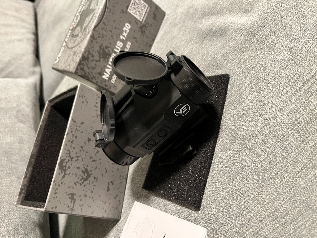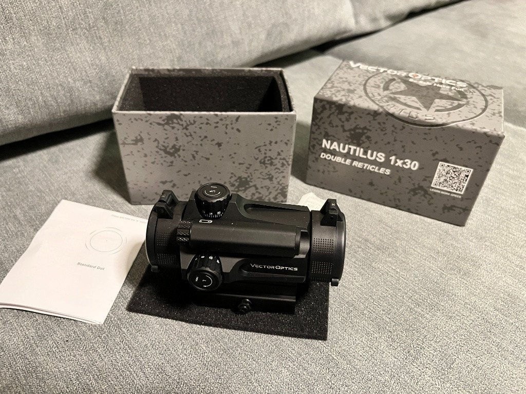 Nový, vč. balení. PC: 2370,- Základní specifikace Kolimátor Vector Nautilus 1x30 Zvětšení: 1x Objektiv Průměr čočky: 30 mm Optika: Vícevrstvá Zorné pole: 59 stop @ 100 yds Délka: 110 mm / 4,3 palce Hmotnost: 270 g / 9,5 unce Klik: 1MOA Velikost tečky: 3MOA Rozsah nastavení: 60MOA Paralaxa: <1MOA Intenzita teček: 11 úrovní červená Povrchová úprava: černý matný Typ baterie: AAA. Není součástí dodávky Zvuková úprava klikací věže Nárazuvzdorný, voděodolný Rychloupínací montáž