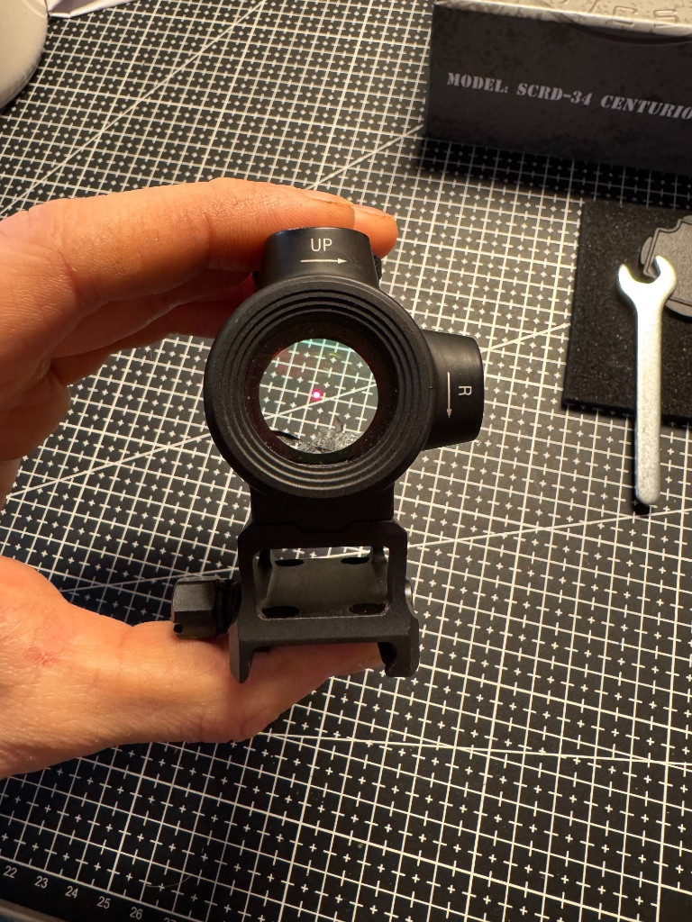 Nabízím kolimec Centurion od VO 1x30. Skvělej kolimec s vysokou i nízkou montáží. Záměrný bod červená tečka, několik stupňů jasu. Záměrný bod je krásně vidět i za slunečného dne. Jedná se o kvalitní kolimec, který lhze osadit i na menší ráže ostrých zbraní. Kupovaný na Anareusu cca 2,5 roku zpět za 2800kč. Přidám kompletní balení. Jediná vada je, že dostal před nějakým časem zásah od kuličky na hranici těla a předního sklíčka, je tam prasklinka, ale funguje normálně. Proto tak nízká cena.
