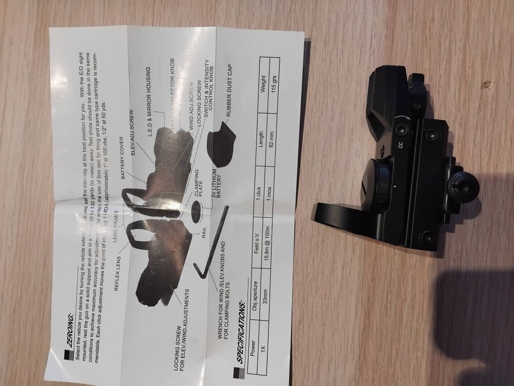 Prodám otevřený kolimátor, dvě barvy záměrného bodu, 4 typy záměrného bodu, 4 stupně intezity. V základní variantě je na 11mm lištu (vzduchovka,...),+ je na něm redukce na 22mm lištu. Důvod - přechod na magnifer.