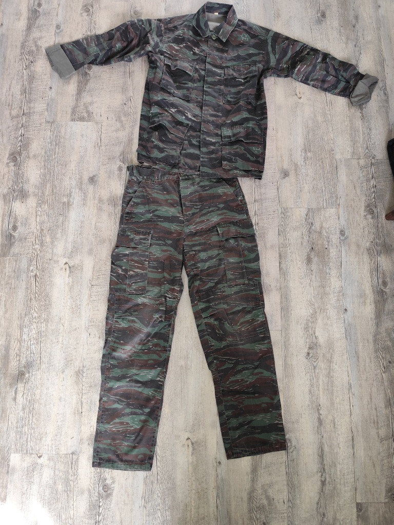 Zdravím, prodám používané maskáče. Maskovací vzor tiger stripe. Velikost S. Neponičené, známky používání patrné. Cena 400 + poštovné platí kupující.