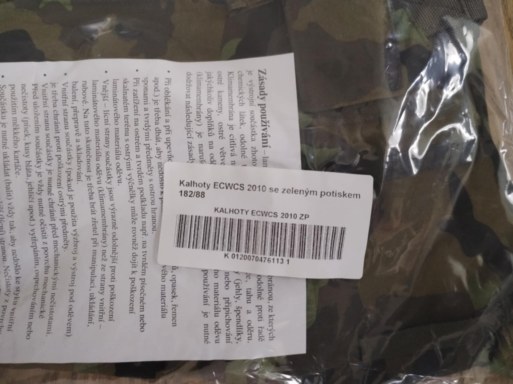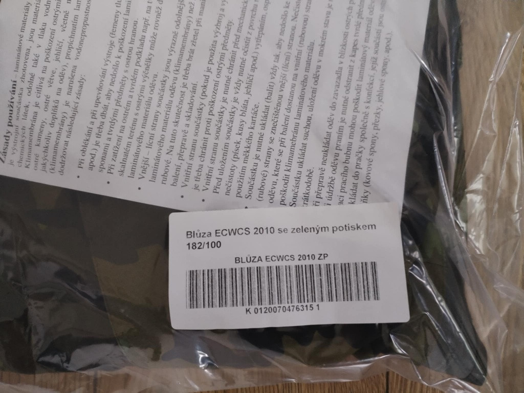 Zdravím, prodám nový, zabalený komplet ECWCS AČR. Blůza ECWCS 2010 ZP - vel. 182/100. Kalhoty ECWCS 2010 ZP - vel. 182/88. Dopravu si hradí kupující. Děkuji.