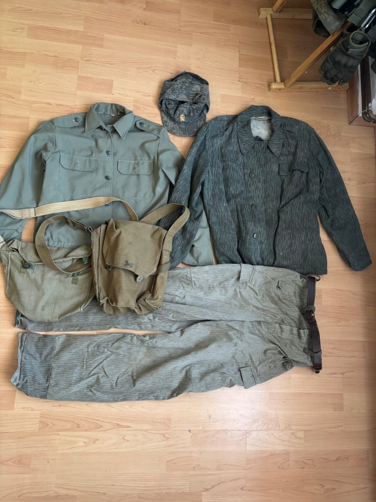 Originální československá uniforma vz. 60 – kompletní set: kalhoty, 2 blůzy, čepice a 2 brašny na plynovou masku. Cena dohodou.