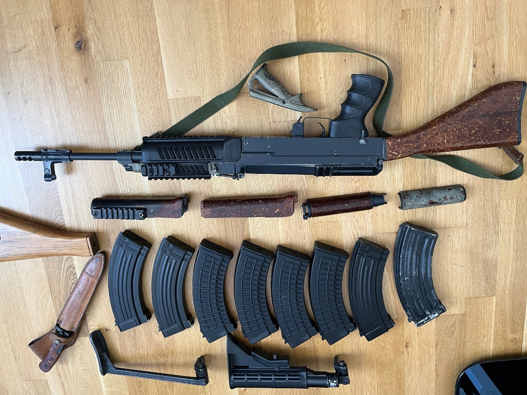 Prodám airsoftovou kosu (Sa58), vyrobena v ČR, od Airsoftpro. Tělo CNC výroba z hliníku, ostatní komponenty jsou z ostré kosy. Uvnitř je kalachový mechabox, SHS kola, přesná hlaveň, 130 pružina. 1x zásobník (točák) z ostré kosy + 7 dalších z kalacha. K tomu 2x sklopná pažba (origo kosa), FAB polymerové předpažbí z ostré, dřevěná pažba, bodák. Cena za vše. K vidění v Úvalech, popř. pošlu zásilkovou.