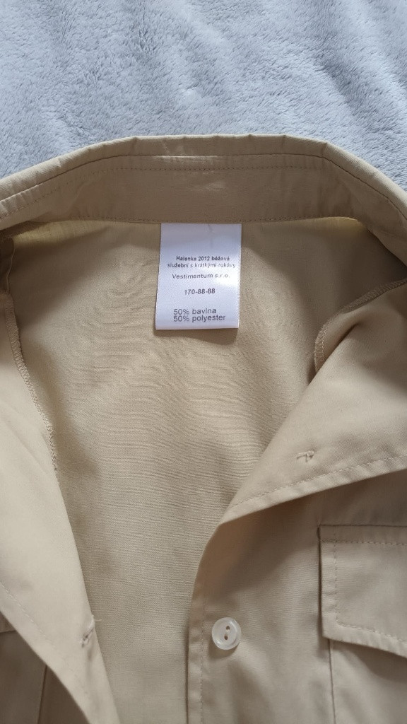 Prodám dámskou béžovou košili vzor 97 s krátkými rukávy. Velikost 170-88-88, nenošená.