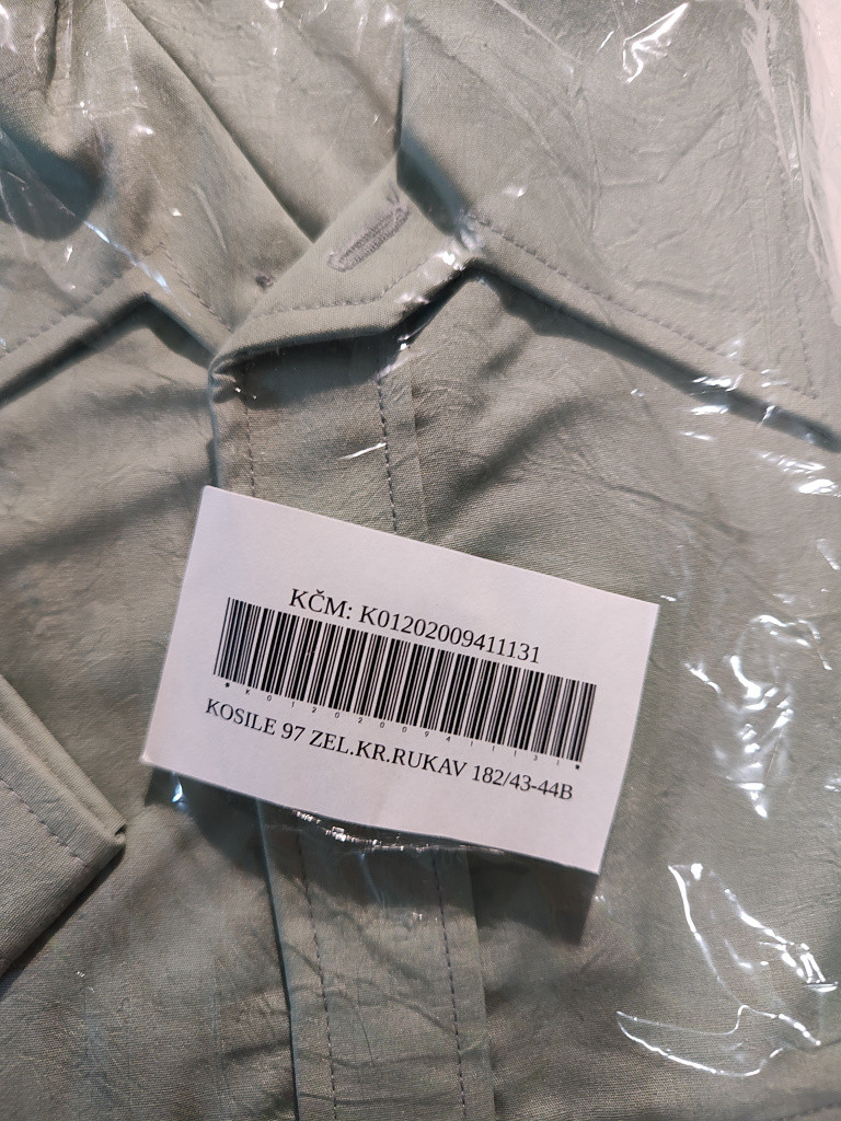 Popis:Košile vz. 97 zelená krátký rukáv - vel. 182/43-44B - NOVÁ
