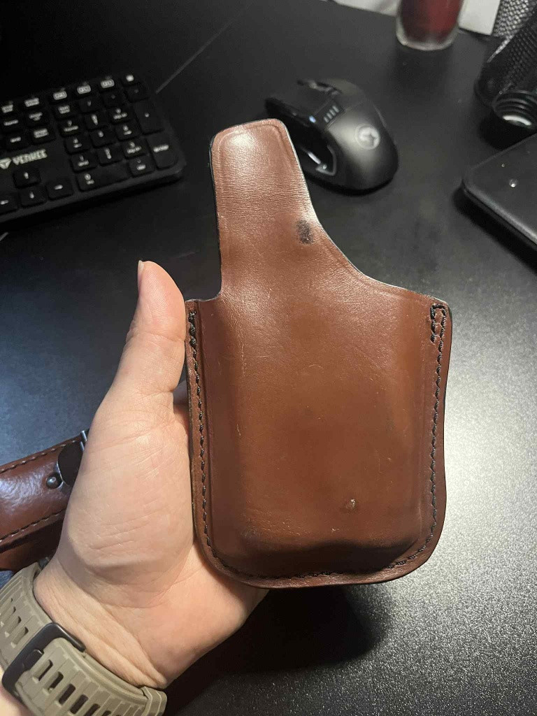 Kožené pouzdro Falco holster, na Glock 19, se svítilnou Streamlight TLR7A a možností kolimátoru a tritiových mířidel 8mm. Stav 7,5/10. Cena 1 400 Kč. Kožené pouzdro Falco holster na zásobník 9mm ideálně Glock 19. Stav 9/10. Cena 800 Kč. Mrkněte na další inzeráty.