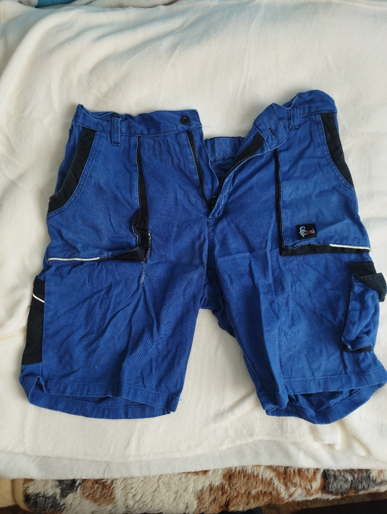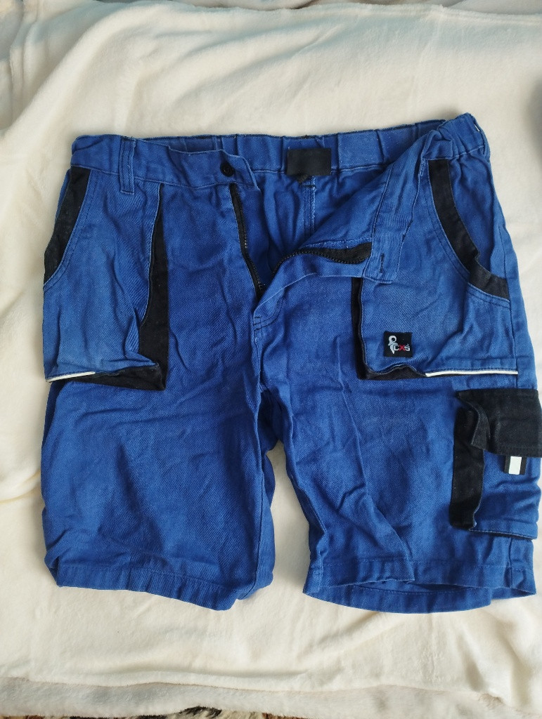 krátké pracovní kalhoty 54 velikost 3 ks cena za kůs 30 kč + poštovné obvod pasu 1) modré 90 2) modré 90 šedé 95