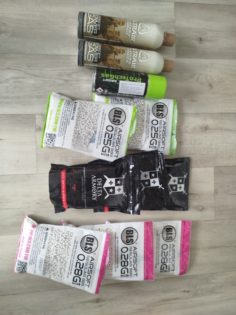 plyny všechny za 250 (ASG plyn jeden nový a dva ostatní poloprázdné) 0,28 pytel za 180 (dva nové a jeden otevřený přidám zdarma) 0,20 všechny za 150 0,25 oba za 150 (oba otevřené)