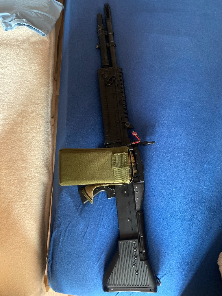 Prodám airsoftový kulomet M60 od výrobce A&K ve zkrácené verzi (bez mušky, bez dvojnožky, kratší hlaveň). Předchozí majitel kulas celkem slušně upravil, takže se střelec s tou váhou netahá pro nic za nic. Kulomet prodávám z důvodu nedostatku času a je mi líto aby s nevyužitým potenciálem ležel u mě ve skříni. Mnou nebyl nikdy hraný, pouze jsem z něj na zkoušku vystřelil asi 100 kulí. Ke kulometu je funkční zásobník - krabice a mohu rovněž přidat baterii 7,4V používanou pro simulaci reálné kadence, jinak pro pořádnou řežbu zvládne bez problémů 11,1V. Kulomet má konektor k baterii T-dean. Nikam neposílám, pouze osobní předání v okolí Mariánských Lázní. Jsem ochoten dovézt po Karlovarském kraji, případně mohu dopravit kulo na Prahu 6.