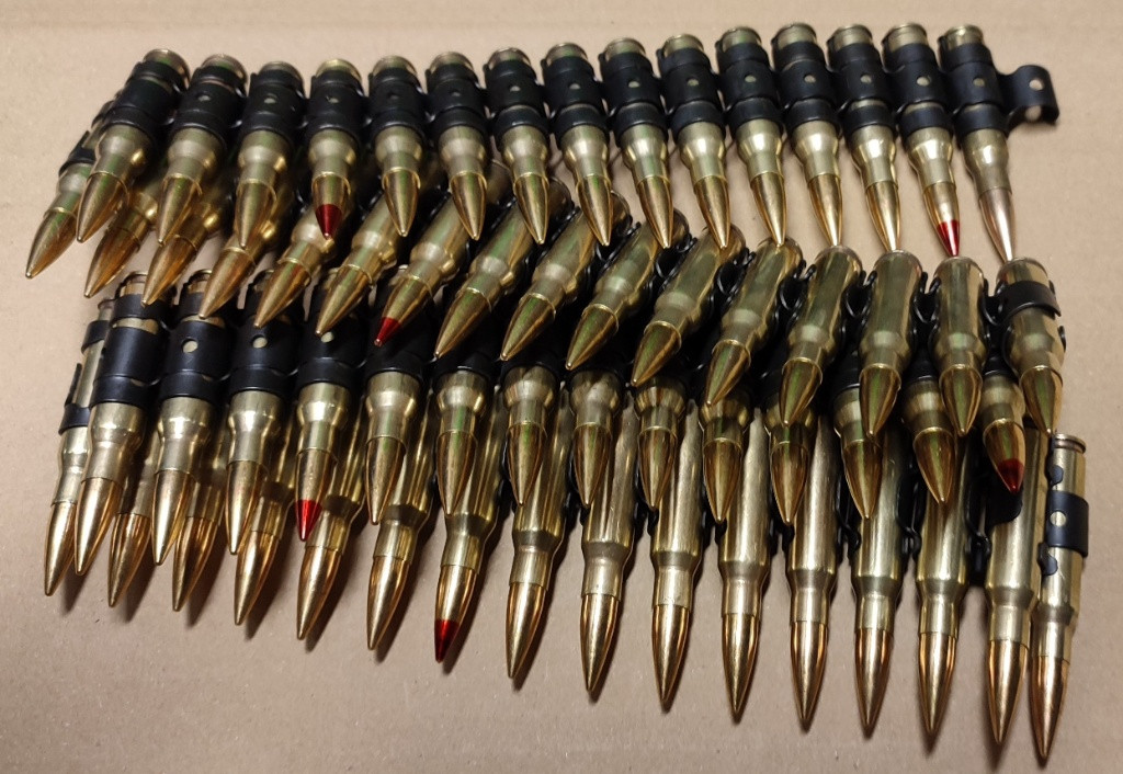 Popis:Kulometný pás NATO s maketami nábojů 7,62x51mm