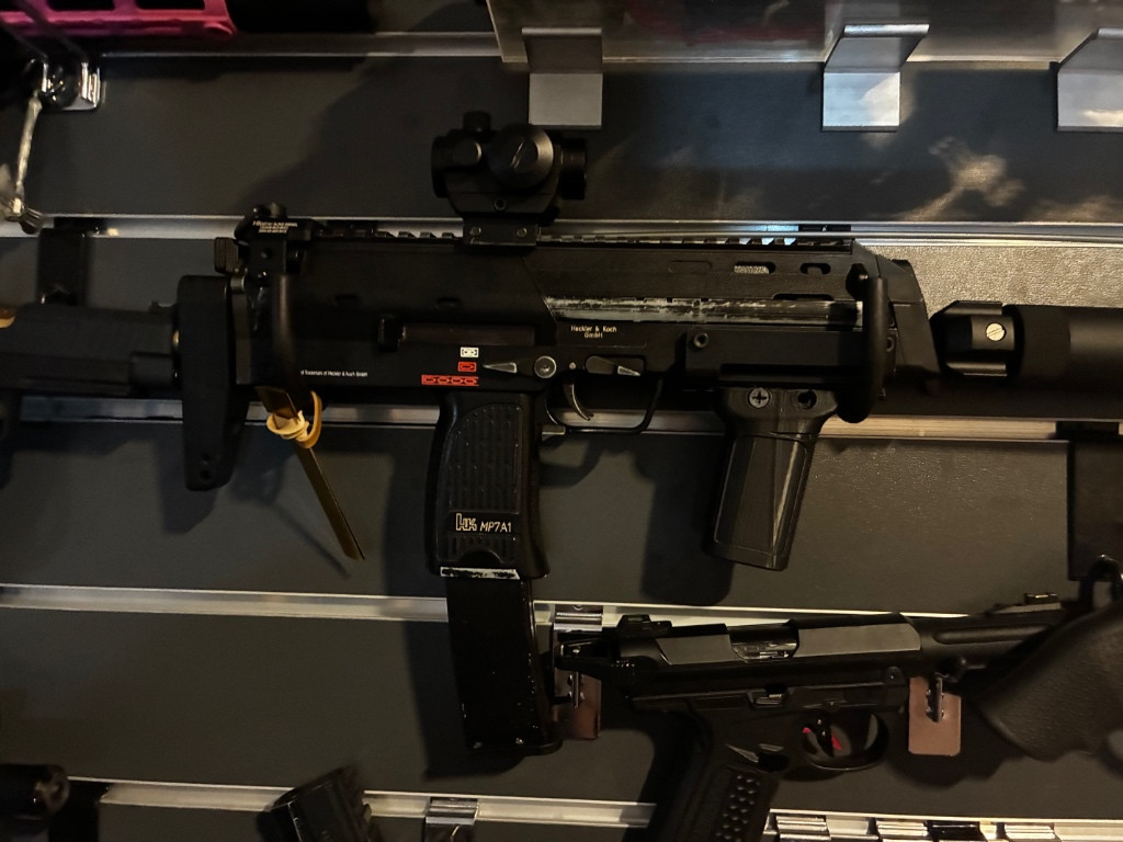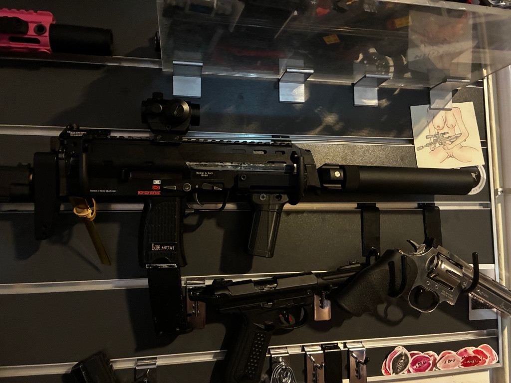 Prodám MP7, funkční stav (semi, full, safe - 1,6J s 0.30bb), oděrky odpovídají stáří. Prasklé tělo vzadu (klasická nemoc), opraveno úchytem na RIS lištu - nemá vliv na funkčnost. Tlumič a kolimator součástí. Tělo upraveno na RIS lištu pro grip - aktuálně je tam konverze z 3D tisku, ale dá se koupit kovová (na anareus například). Celkem 4ks zásobníků - dva funkční, těsní, podávají, dva na náhradní díly. Všechny zásobníky byly původně HPA, tudíž na zadní straně původně díra od ventilku. Cena kompletu 4500kč. Výměna možná (Zlín a okolí), případně pošta. Rychlé jednání = sleva.