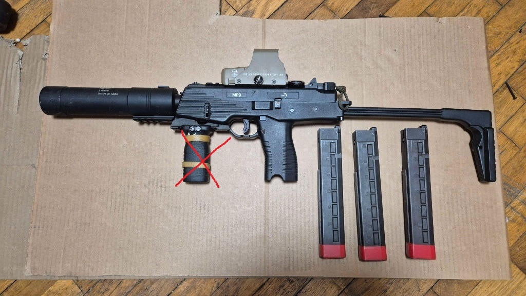 Popis:KWA MP9 + 3 zásobníky a tlumič