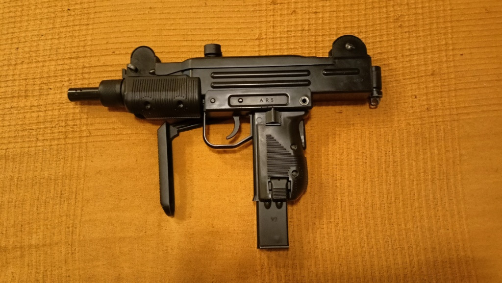 Pekelný stroj, ktery umí jak hlasitě štěkat, tak pěkně kousat. Tenhle kus už má něco za sebou, zadní mířidlo zažilo lepší dny, ale tohle je přece UZI, na co mířidla.