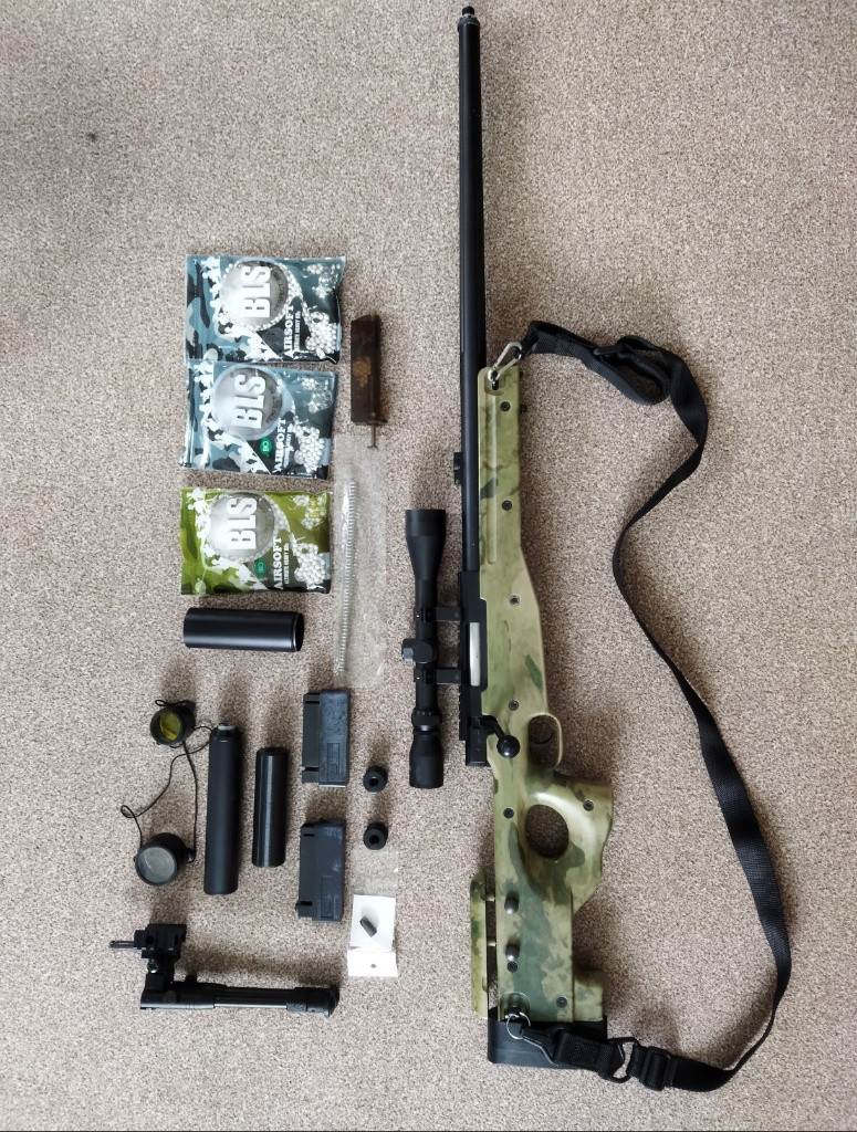 Prodám L96 ve full upgradu - SLEVA MOŽNÁ po dohodě (pružina M170, 6.01 hlaveň, CNC spoušťák airsoftpro, airsoftpro odlehčený píst, airsoftpro hop up, gumka mapleleaf(ve zbrani je verze kompromis mezi dostřelem a přesností, přidám ještě verzi top range), hopup předělaný na systém TDC, ocelový valec, tělo zbraně je od E&C). Ke zbrani dám dva zásobníky, jeden plastový kratší a celokovový dlouhý tlumič, centrovací vložky hlavně, původní pružinu M160, dvojnožku, plničku, popruh, 0,45g a 0,43g BB, zkrátka vše co je na obrázku. Zbraň střílí přesně na 80-90 metrů.(ale dostřelí dál), je vyčištěná, seřízená, vše funguje. Původní cena zbraně 4500Kč, cena upgradu okolo 6500Kč. Na ceně se můžeme domluvit. Důvod prodeje: nemám už bohužel čas na airsoft a je škoda aby zbraň byla jen pověšená na zdi.
