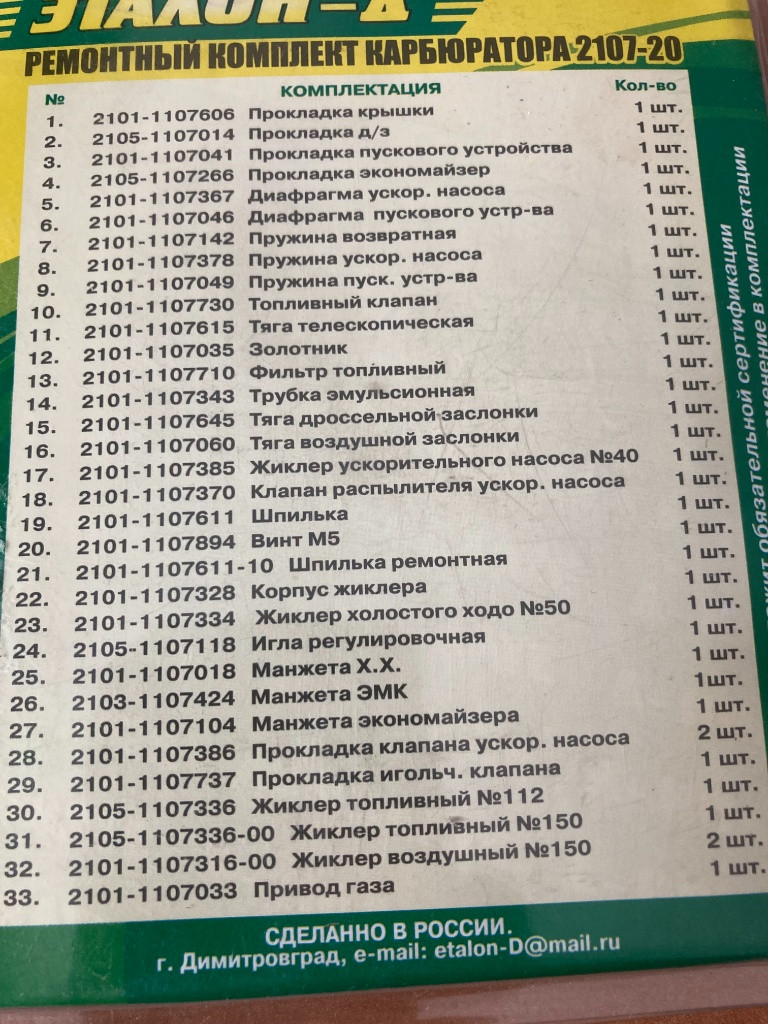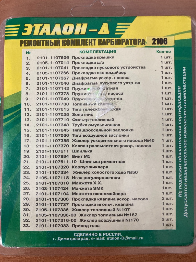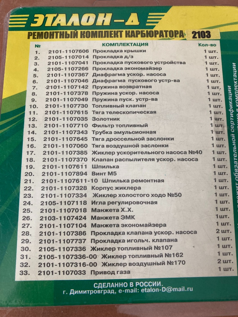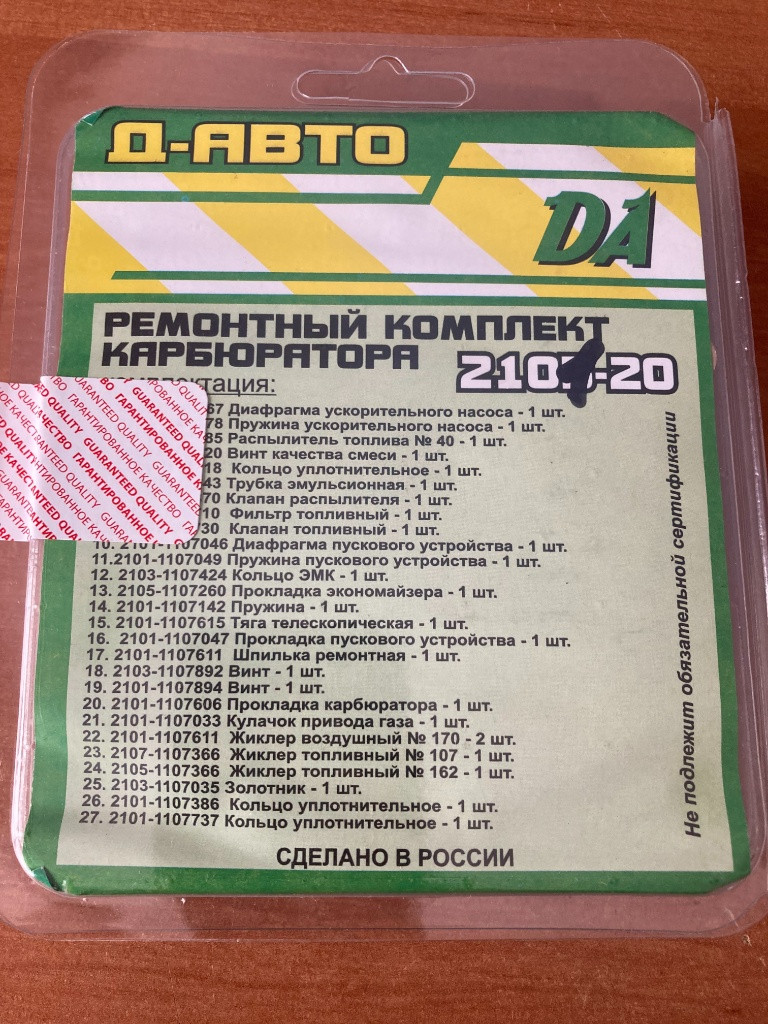 Na Lada, Lada Niva, Žiguli a iné predám nové karburátorové sady (2101, 2103, 2105, 2106, 2107, 2108). Sú to veľké opravné sady na komletnú generálku karburátora. Ceny sú od 380 Czk do 450 Czk v závislosti od typu. Kuriér cca 150Czk. Viac info na tel 00421 903 555 356