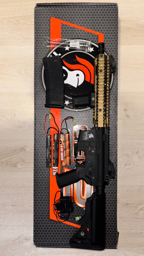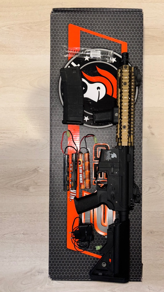 Dobrý den prodám airsoftovou repliku od Lancer tactical model mk18 druhe generace zbran je skoro nepouzivana měl jsem ju jen jednou na akci ke zbraňi přidám nabiječku, zásobník , dvě nimh baterie a puvodní pružinu 120M teď je tam silnější 130M zbraň prošla kompletním servisem