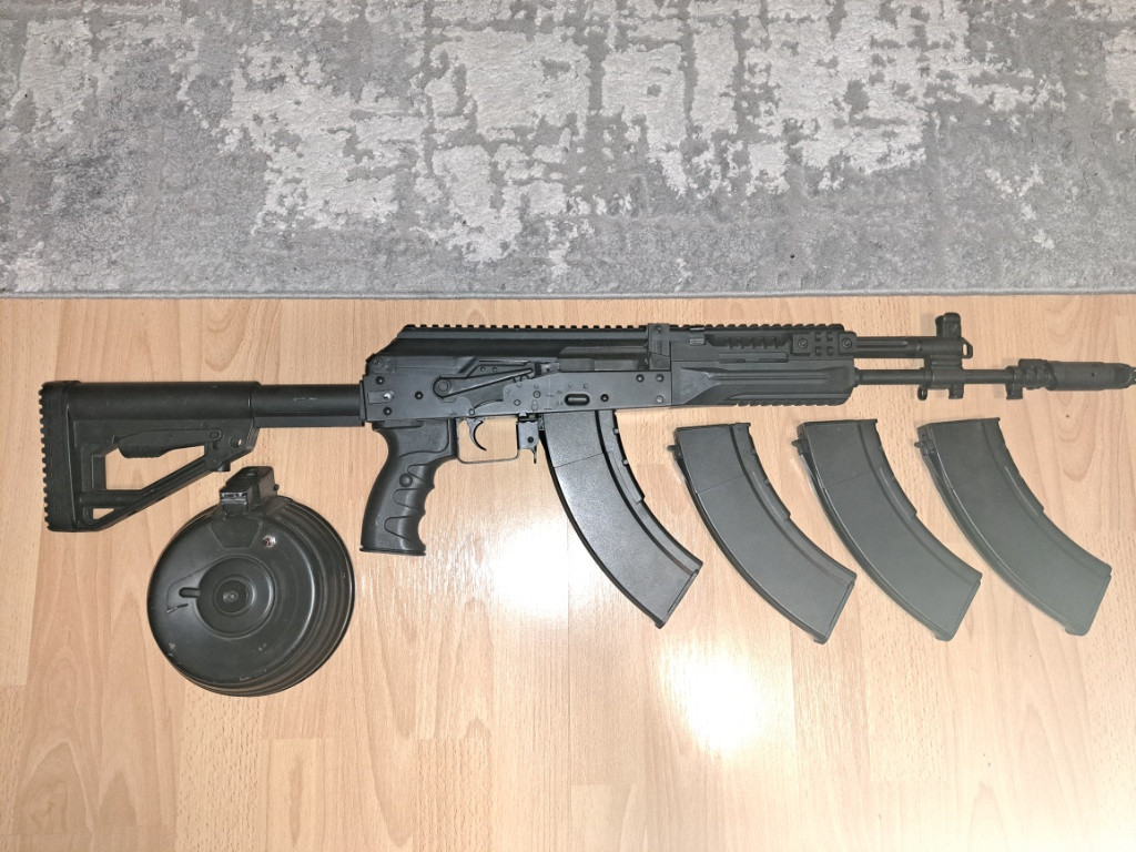 Predám pekné LCT AK12. Použité na pár hrách skoro ako nové, všetko funkčné. Replika ma cca 1,5j. Replika je celokov, oceľ. Mechabox s rýchlou vymenou pružiny, CNC kolesá, CNC vzduchotechnika, piest s plným ozubením, dean T konektor. K replike 4 tlačáky, a elektrický bubon Cyma. Vsetko plne funkčné. Tel. +421918925709