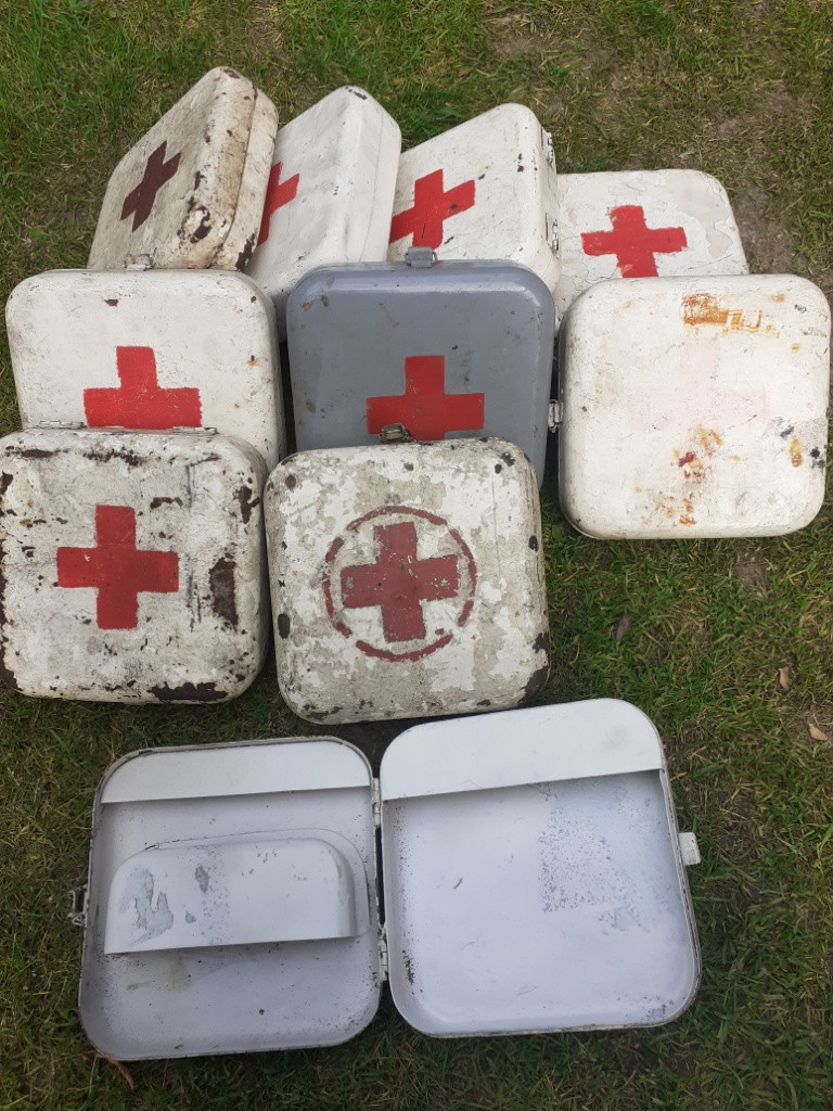 Jedná se o kvalitní, použité, historické lékárničky pro tanky a další vojenská vozidla. Vydrží jakékoli podmínky. Vnější povrch nese známky opotřebení. Cena je za 10 kusů.