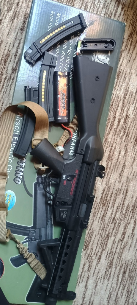Predám samopal MP5A2 od výrobcu classic army z licenciou b&t Realistické razenie je prítomné, full metal konštrukcia, 3d tisknute keymod predpazbie, 315fps reálne nameraných, motor je high speed high torque, v cene big block batéria 9,6 umiestnené v pazbe, 3 zásobníky ( dva tlačne jeden točny) montáž na kolimator Zbraň len na jednej akcii inak bola len na stene a chytala prach