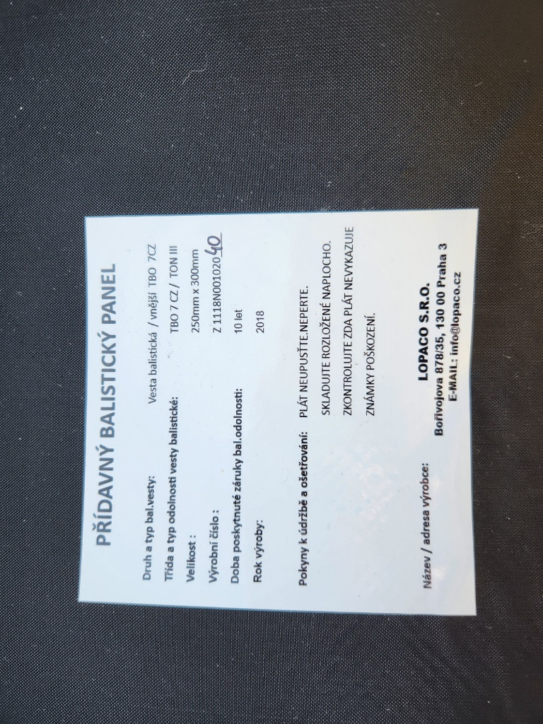 Nabízím k prodeji přídavné balistické pláty do vesty nebo nosiče. Velikost 25x30cm,výrobce LOPACO.Balistická odolnost TBO 7CZ,rok výroby 2018.Pláty byly ve vestě a nesou známky použití,někde se začala krabatit ta vrchní textilní vrstva tak byly vyřazené.Jinak jsou v pořádku bez poškození a můžou ještě dobře posloužit. Cena za oba (přední + zadní) 6500kč + zásilkovna.Obdobné nové pláty stojí třeba 9000kč/kus.