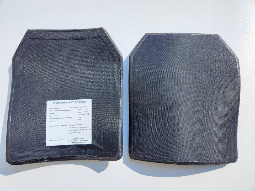 Nabízím k prodeji přídavné balistické pláty do vesty nebo nosiče. Velikost 25x30cm,výrobce LOPACO.Balistická odolnost TBO 7CZ,rok výroby 2018.Pláty byly ve vestě a nesou známky použití,někde se začala krabatit ta vrchní textilní vrstva tak byly vyřazené.Jinak jsou v pořádku bez poškození a můžou ještě dobře posloužit. Cena za oba (přední + zadní) 7000kč + zásilkovna.Obdobné nové pláty stojí třeba 9000kč/kus.