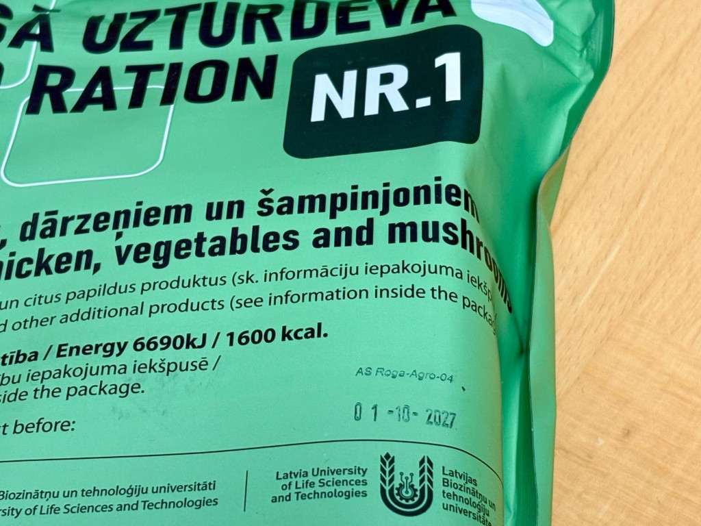 | Lotyšská vojenská potravinová dávka MRE 12h Menu 4 Hrachová s uzeným |