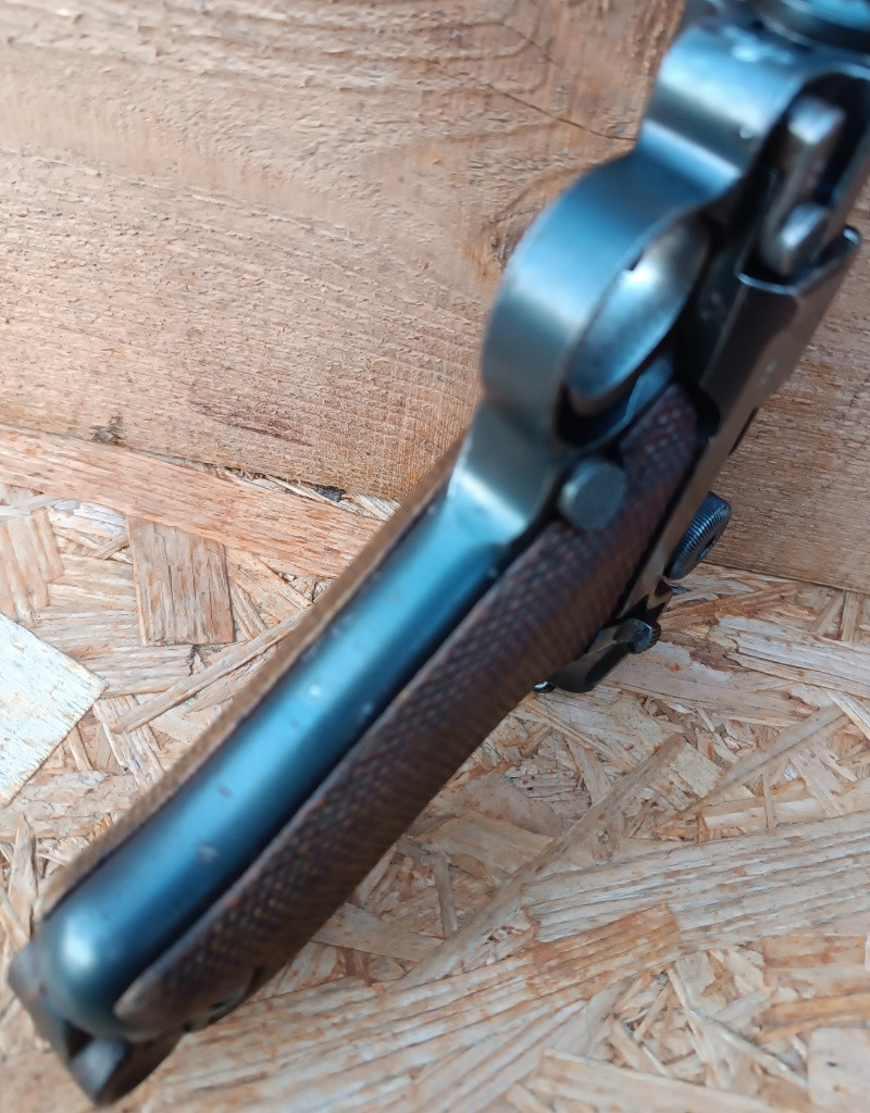 Prodám : LP mod. 08, ráže 9 Luger, výroba DWM Berlin z roku 1917 z období WWI. -původní sčíslování zbraně - originální povrchová úprava (brynýrování) z WWI -žádné novodobé broušení, leštění a pod.zásahy -zbraň je plně funkční, zachovalá, skrytá státní zkušebna ČR, CIP 2025(skryto pod pažbičkou) -zásobník originál s dřev.bodkou WWI v top stavu Pistole je dělostřelecká varianta, která posléze našla uplatnění ve výzbroji úderných oddílů-Sturmtruppen, které ji použivaly v kombinaci s vysokokapacitním zásobníkem v zákopové válce. Krásný sběratelský kousek do sbírky, vhodný i jako investiční zbraň. ZP+NP.