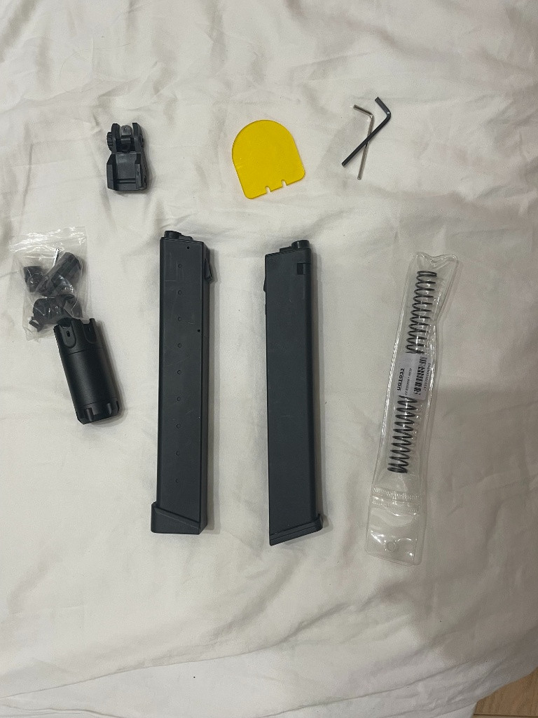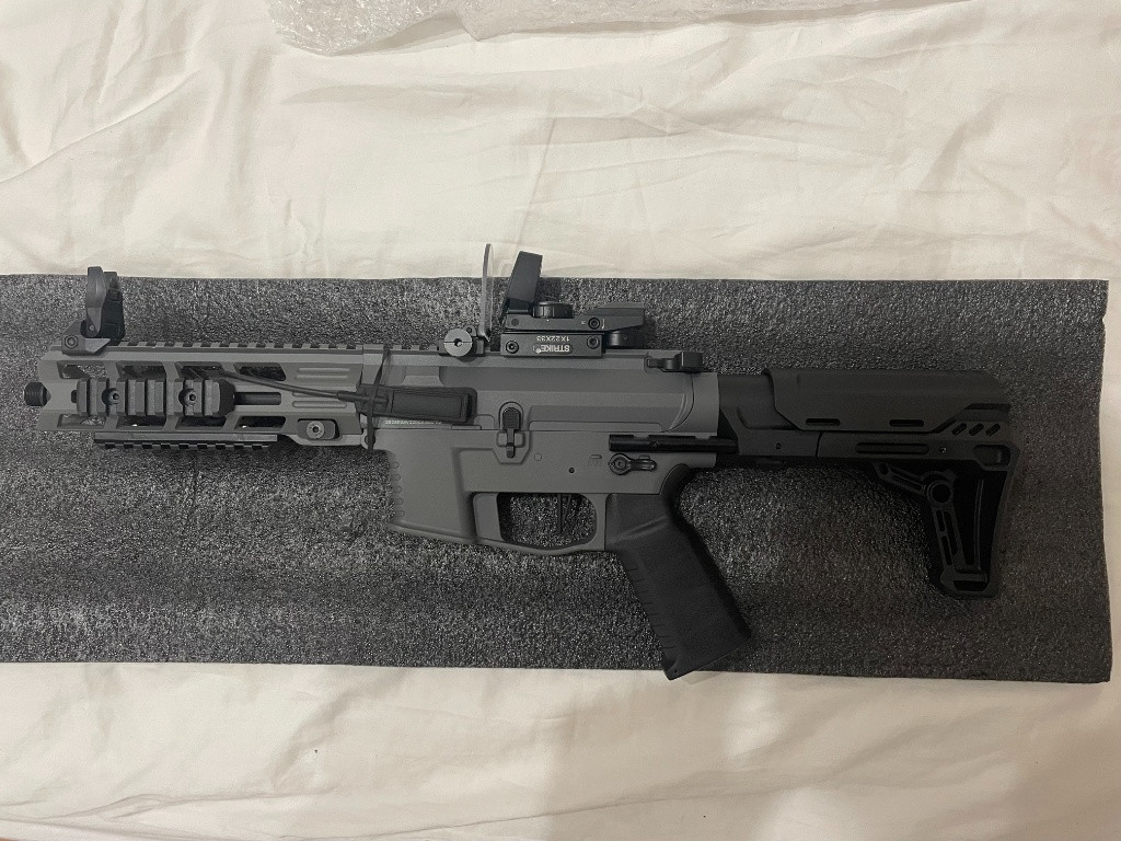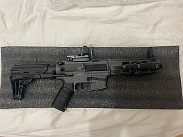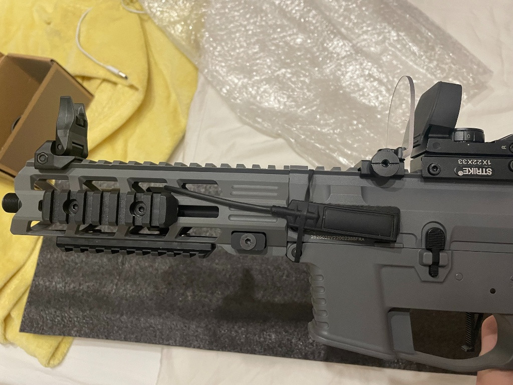 Nabízím tuto zbran k prodeji s nekolika príslušenstvím. Svítilna, red dot, sklicko na ochranu red dotu, extra zásobník a raily. Zbran byla pouzita dohromady na 4 půl denních akcích. Preferoval bych osobní převzatí praha 19 ale zasilkovna nebo balíkovna by taktéž šla. pokud máte dotazy, prosím neváhejte se zeptat. NASVICOVACÍ TLUMIČ UŽ NENÍ SOUČÁSTÍ. Link na zbran: https://airsoftpro.cz/cz/airsoftove- zbrane/elektricke-dlouhe-aeg/ostatni-elektricke- zbrane/airsoftova-zbran-lt-35-gen2-9mm-battle-x-pdw-seda- detail