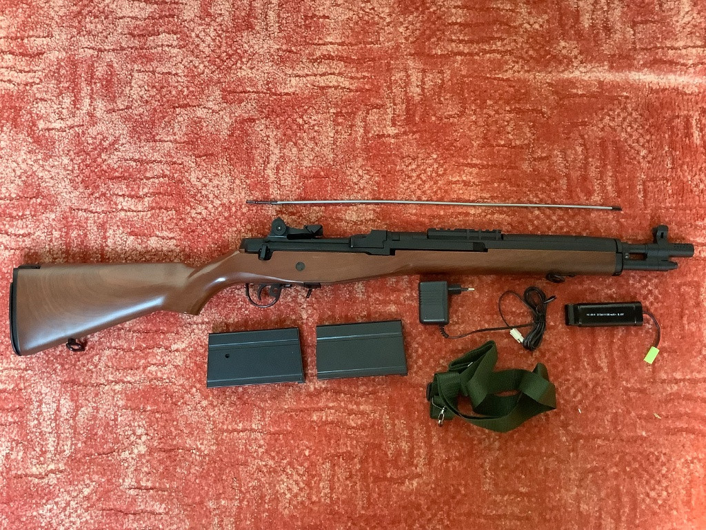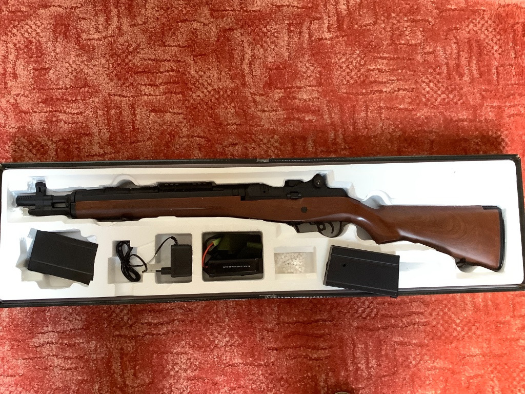 Prodám airsoftovou zbraň M14 Socom v imitaci dřeva (mareriál rěla je plast) od značky CYMA. Zbraň je 1 rok stará, ještě v záruce, vystříleno asi 2000 kulí, úsťová rychlost cca 110 m/s. Ke zbrani je jeden točný a jeden tlačný zásobník, původní baterie a nabíječka, původní popruh a vytěrák hlavně. Vše v originál krabici. Cena 3200 kč + poštovné. Již pro ni nemám využití.