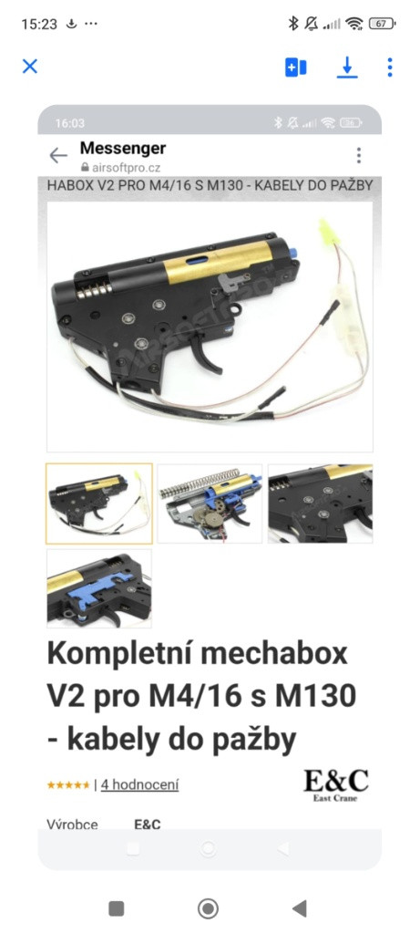 Prodam starsi m16A2 od E&C s kovovym telem a razbou. E&C mechabox je novej parkrat vystreleno set m130. Hlaveň 6,05mm a hop komora od retro arms, ale je už vychozený zobáček na prachové krytce, takže je pouze v poloze otevřený.