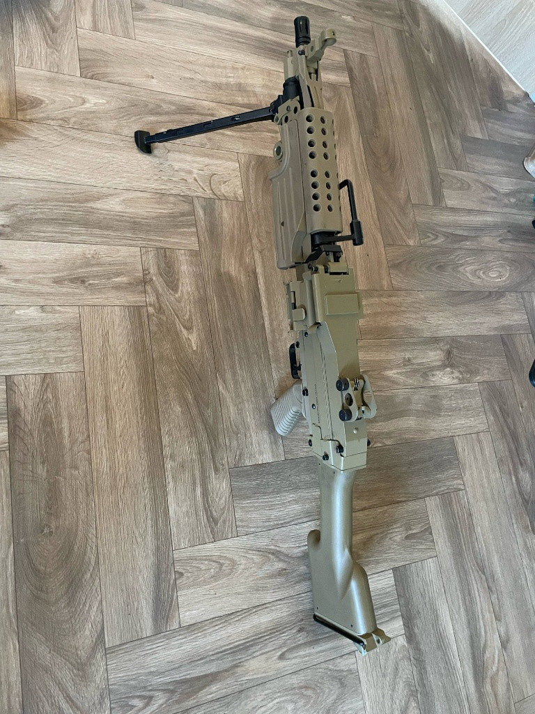 Prodám svoji M249 Mk2 od Specny včetně origo zásobníku na 2400bbs. Zbraň je měsíc po servise. Uvnitř utěsněná vzduchotechnika s upravenou CNC hlavou válce (m249 mají větší průměr kolíků na usazení hlavy válce než klasické V2 proto se musí upravit), 18:1 SHS New version kola, RA ramínko, RA píst s celokovovým ozubem (14,5), bezuhlíkový motor Dark Matter 26k, hlaveň Maple Leaf 6,02 310mm a hop up komora od Epes. Výkon je nastavený na 2J. Chtěl jsem zkusit hrát s kulometem, ale pravděpodobně se budu dále držet manuálních odstřelovaček. Cenu si představuji okolo 11 000kč S cenou by se dalo eventuálně přiměřeně hýbat. Osobní předání Kladno, Slaný, Dřínov