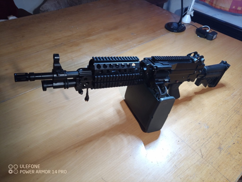 Prodám M249 od výrobce AK. Přesná hlaveň kompletní vzduchotechnika kvalitní hop komora silikonová kabeláž s telátkem.