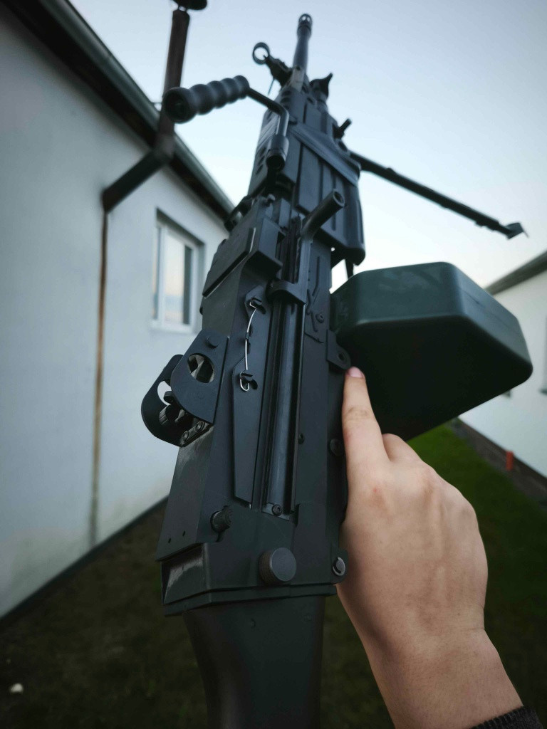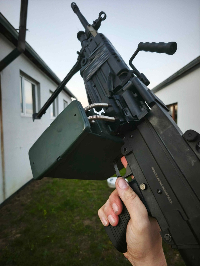 Ahoj, Prodávám M249 od Specna Arms, opravovaná z druhé ruky, původní majitel přerušil kontakt v pojistce, servisován Mechabox a dodán zátěžový motor INFINITY CNC U-30000 pro lepší kadenci. Zásobník podává, dokonce jako jeden z mála, funguje snímač zvuku takže se motor nemusí točit nonstop. Měřeno na 0.20g Volat ideálně od 8 hod do 20, jinak WhatsApp - SMS 24/7