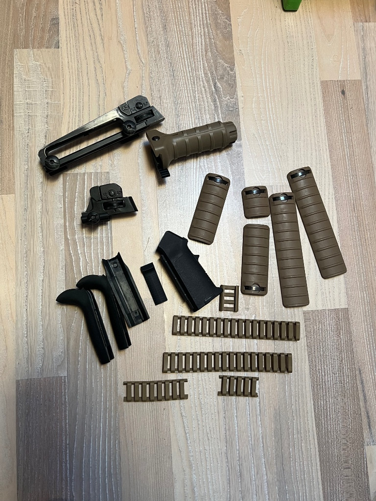 Arko od Dboy, vevnitř přesná hlaveň a prowin komora, T konektory, vevnitř lehký upg. Ustovka z we gbb 416, popruh origo czub z brenu 2, gripy kopie tango down, pažba kopie Magpul moe. Osazena kopií acogu TA01, hledí troy a peq15 (laser a svítilna). Ke zbrani 8 zásobníků a přihodím zbytky z airsoft dílů co tady mám. Nosný oblouk, zadní miřidlo, gripy, krytky…
