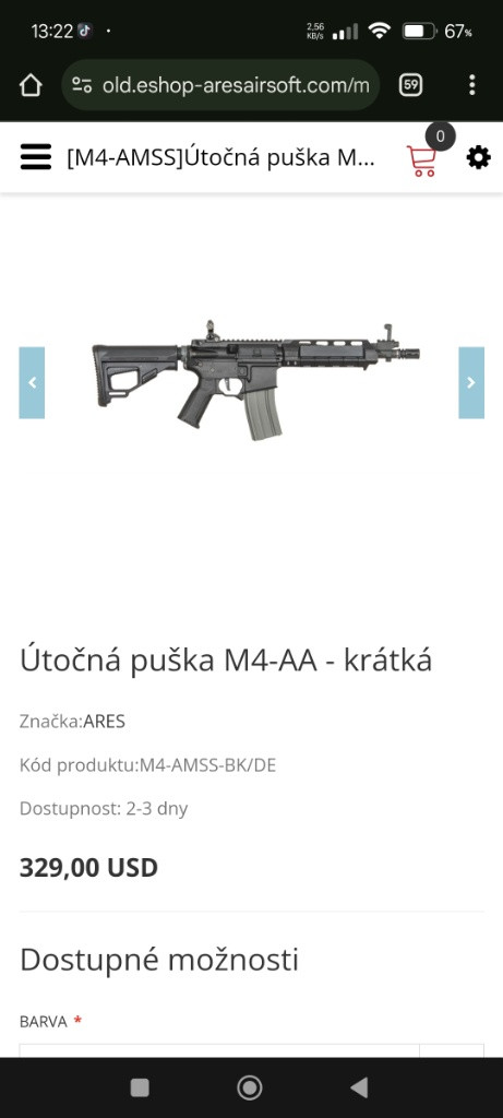 Popis:M4-AMSS-BK ares amoeba + výbava