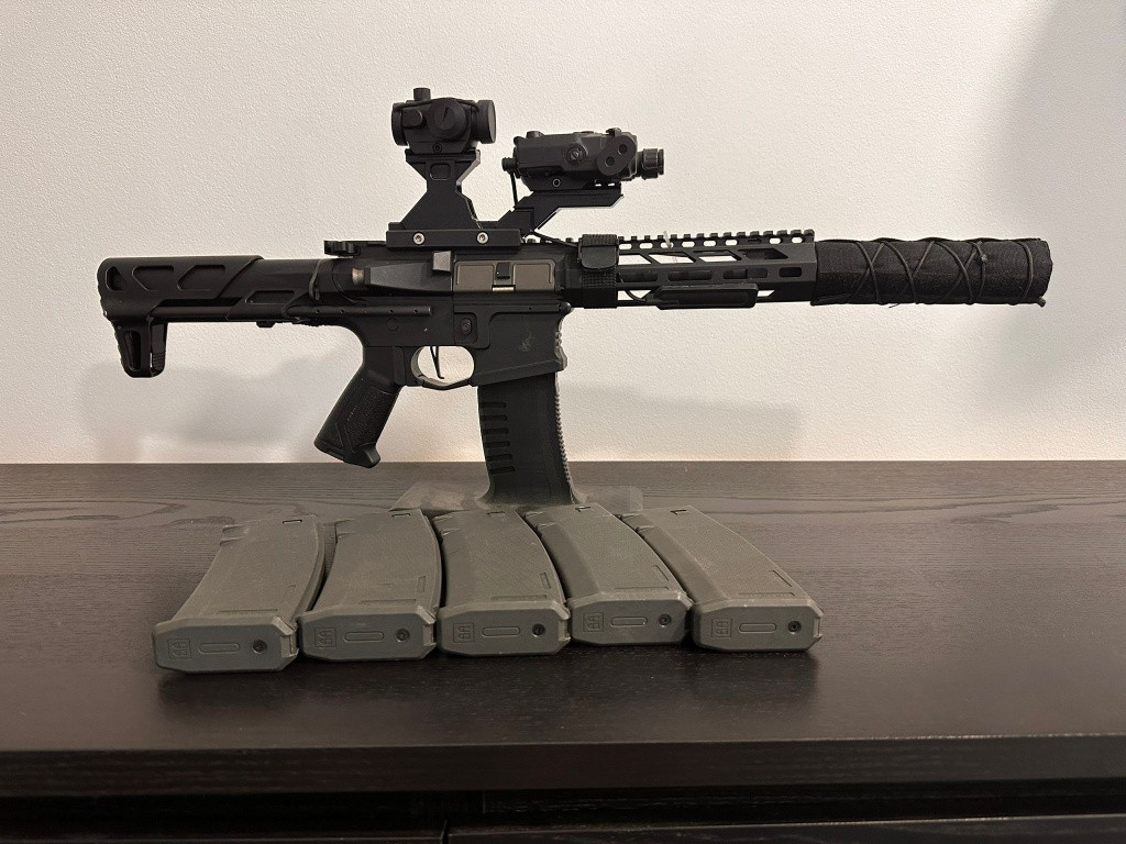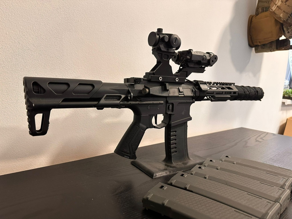 Zdravím , prodám zbran od firmy GG jedná se o platformu AR. zbran proběhla menším upgradem. zbran je stavěna pouze jako CQB. ve zbrani je přesnější hlavěn MapleLeaf , gumička MP, vysokorychlostní kola 16:1 , Vzduchotechnika , Píst. motor 30k. Zbran je Ready to CQB. POZOR CENA POUZE ZA ZBRAN. po domluvě možné přidat ruzné komponenty (za připlatek)