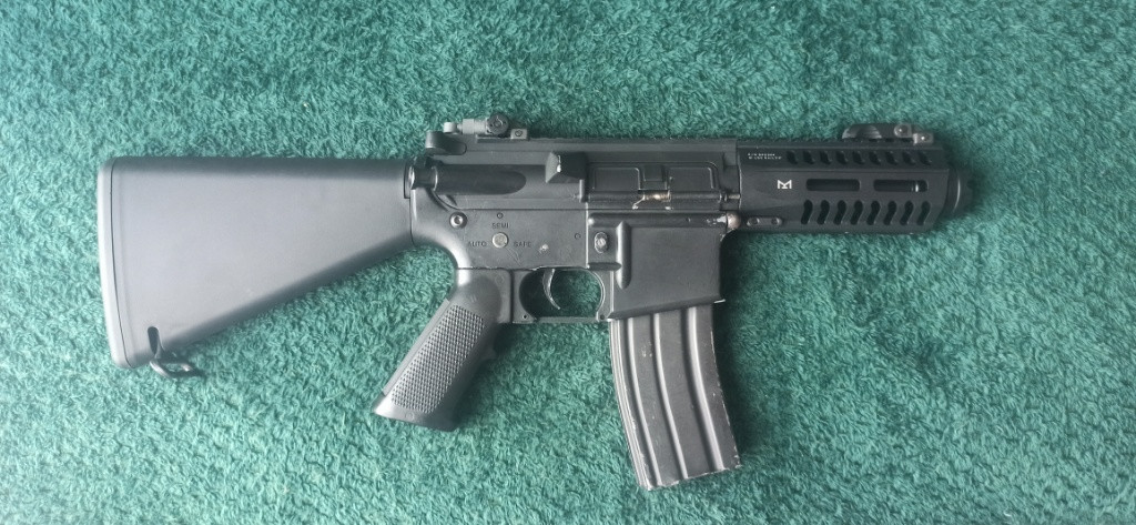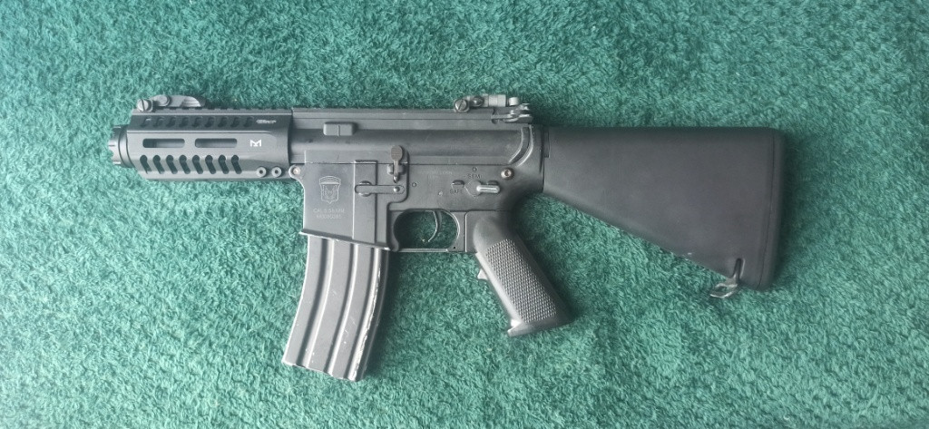 Prodám zbraň M4 ve stylu Stubby Killer, tělo je z kovu, kompaktni pevná pažba SRC, předpazbi + vnější hlaveň + kompenzátor + mířidla jsou z G&G ARP9. Uvnitř je instalovány mosfet od Perunu. Výkon je cca 100ms, stavěno na CQB arenu v Paskově.