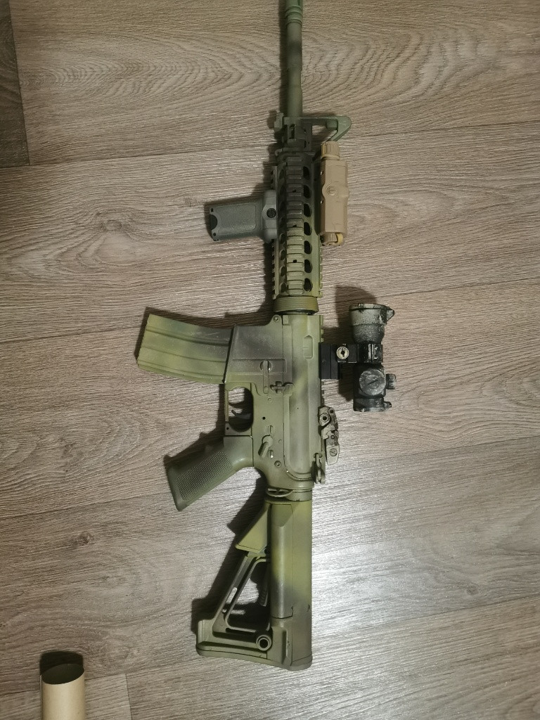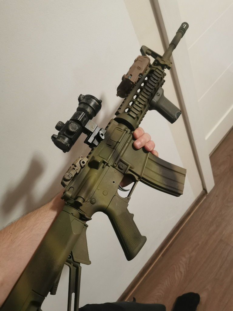 Ahoj prodám custom m4 viz obrázek.. Základ je PJ tělo upraveno pro výměnu pružiny. Uvnitř nový Orion mechabox ze specna arms. Hop up a hlaveň taky specna arms. Motor specna arms.. Vypodlozene kola, udělané AOE, utěsněno, premazano, komora pritlacena k mechu o-kroužky... Je to takový hezký základ na akce do 1.7j nebo na cqb.. Příslušenství zvlášť na prodej - dohodou Pište na whatsapp