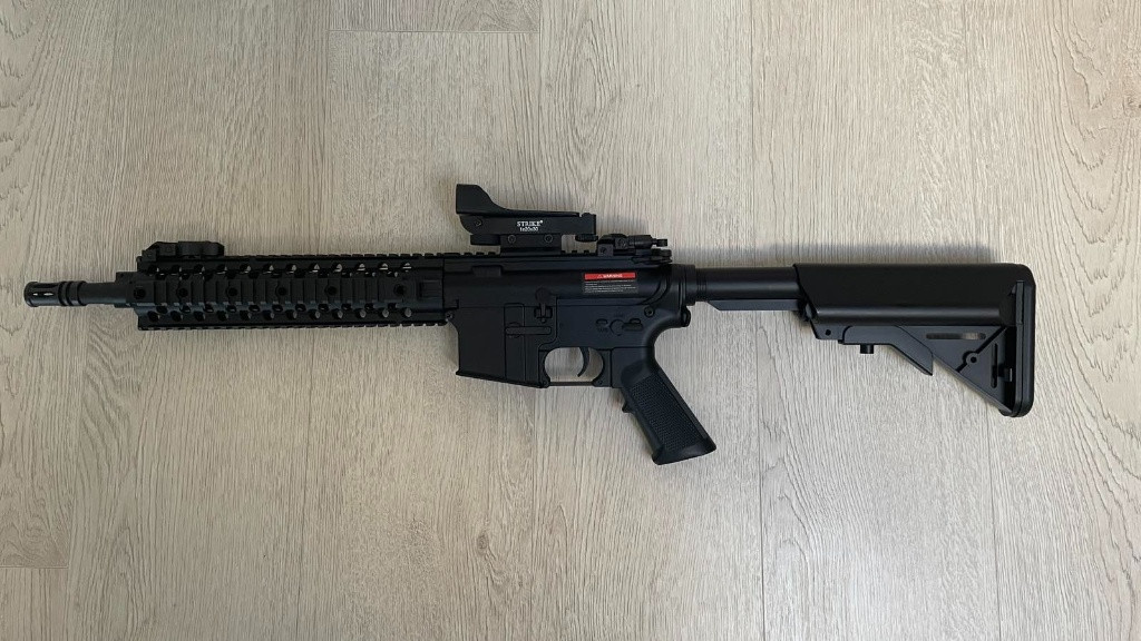 M4 CYMA Doprava zdarma CZ, SK nebo osobní předání Praha, okolí K vidění: https://www.instagram.com/airsoft_approved? igsh=MWRycmg4NDV4YzdnNg%3D%3D&utm_source=qr SET: Zbraň Pouzdro Kolimátor Maska Taktické brýle Baterka Nabíječka Záruční list Základní informace: Režim střelby Jednotlivě i dávka Princip funkce Elektrická Orientační výkon zbraně (+/- 10%) Energie projektilu 1,6 J Úsťová rychlost 125 m/s (410 FPS) Teoretický dostřel 56 m Hop-up Plast, regulovatelný Mechabox V2, Kovová slitina Ložiska 7 mm kovová Ozubená kola Kovová slitina, 18:1 Píst Nylon s 1 kovovým zubem Hlava pístu Plast Motor Základní motor, dlouhá osička Zásobník Kapacita zásobníku 300 Materiál zásobníku Plast Typ zásobníku Točný vysokokapacitní
