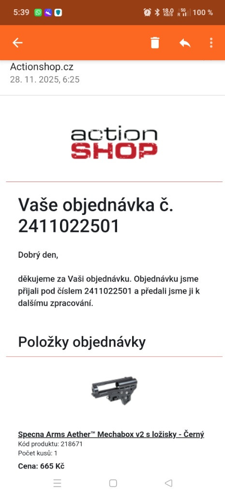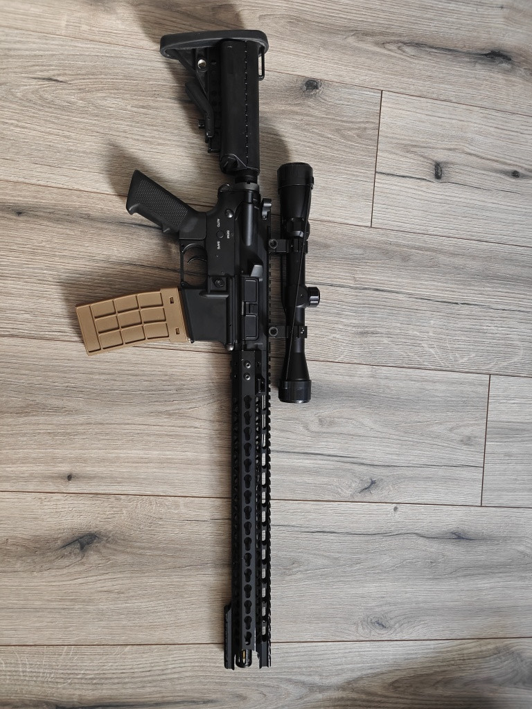 Dobrý den. Na prodej mám tuhle krásku udělanou na dmr v celokovovém provedení. Výměna za sniperku pošlete mi prosím foto na whatsup či email. Odpovídám obratem. Naprosto nový Mechabox Aether od specna Arms+doklad s m140 dává 2,4 J bez Hopu Píst s CNC zuby shs, hlava pístu airsoftpro tryska taky od airpro 21,4mm, shs hlava válce, kola 18:1 s magnetem s procesorovou jednotku ZION ARMS NEBULA 1 na střílení cca 1000 rána to hodně přidávám. Vytáhl sem ji rovnou z kvéru a dál do mecháče. Předpažbí 16,2" key lock, hlaveň 420mm s DA berserker komorou a ML macaron gumičkou s přítlačným segmentem od 4quantum friction. Motor CYMA zátěžový utáhne i m150 pružinu. Originální krabice Puškohled 4x9x34 od A.C.M. Baterie 9,4V od DA plus nabíječka k tomu. Zásobníky doporučuji Cyma waffle pasují skvěle Cena kompletu 6500 o "ceně se dá smlouvat" Nejlépe osobní předání s vyzkoušením. Sem ochotnej přijet do 50km od Sokolova Možnost odeslání přes zasilkovnu pokud půjde. Po dotazu zašlu na whatsup video jak střílí.