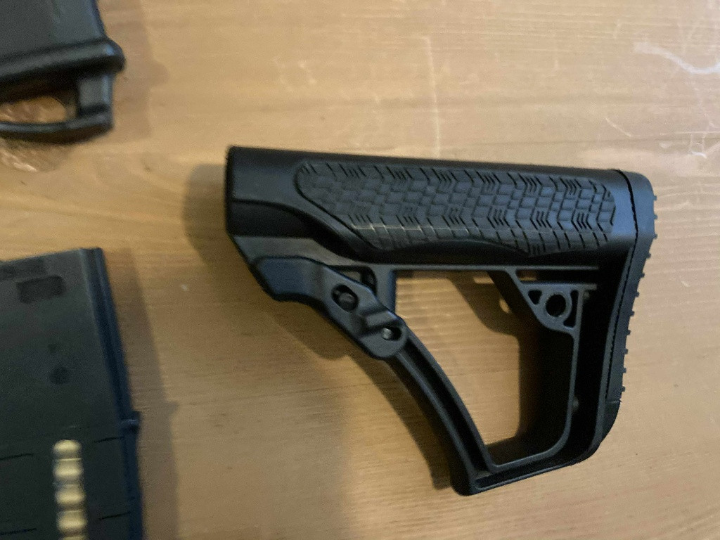 Motor je tam původní EL170, kola myslím zátěžová SHS nebo původní ocelové 18:1 a vzduchotechnika by měla být kombinace as parts a shs píst s ocelovými zuby a tryska epes, což jsem tak nejčastěji používal. Dále je tam původní mech s rychlovýměnou (ocelové E&L jsem neměl nikdy potřebu měnit), JeffTron mosfet v2, Prowin modra komora, gumička pravděpodobně modrá madbull a lepší hlaveň. Předpažbí je CNC asi od retroarms, to samé přepínač střelby vypouštěč závěru i spoušť. Přidám pažbu jak je na foto daniel defensku (kopie). Kolimátor Vector Ratchet 1x23x34 a nejaky zakladni od theta optic. Cena se vším co je na foto a bylo jmenováno.