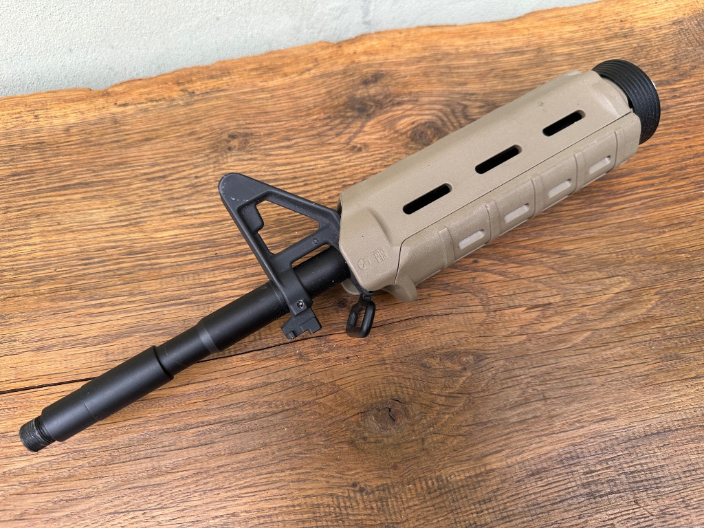 Front set pro M4 od výrobce G&P (pasovat by měl na jakéhokoliv výrobce), obsahuje vnější hlaveň, předpažbí s deltaringem a víčkem + přední mířidlo. Předpažbí je origo Magpul PTS (verze s novým logem), všechno v hezkém nezničeném stavu. Cenu nabídněte, uklízím díly tak se klidně podívejte na moje další inzeráty - rád se domluvím na množstevní slevě.