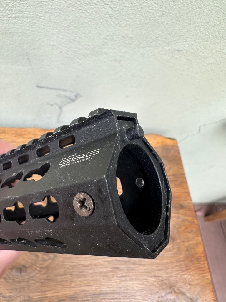 Kovové keymod předpažbí pro M4, matice má dva díly a jeden z nich chybí. Výrobce G&G, délka cca 31cm. Cenu nabídněte, uklízím díly tak se klidně podívejte na moje další inzeráty - rád se domluvím na množstevní slevě.