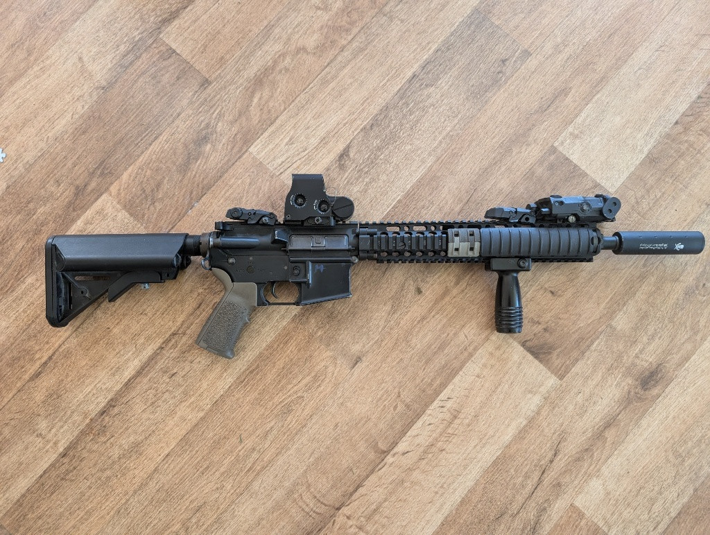 Zdarvím, prodám tuhle dokonale vyladěnou zbraň. Momentálně po výměně hop-up gumičky, výkon 167m/s s 0,2g. Nejlevnější GP s CNC na netu.Ve zbrani kompletní upgrade dělaný v profi servisu. Pokud sháníte kompletní hotovej kvér, do kterého nemusíte nic investovat, tak je to přímo pro vás. Ve zkratce : - retroarms cnc mechabox - km head hlaveň - prowin komora - CNC retro mech - 18:1 kola SHS - superzátěžový motor - Vzduch a píst od Retro arms Příslušenství. Laser svítilna GP, Eotech, Tlumič, ručka, magpull mířidla, zásobníky, přepravní pouzdro. Preferuji osobní předání, ale lze poslat. Při rychlém jednání sleva! Komplet jak je na fotce.