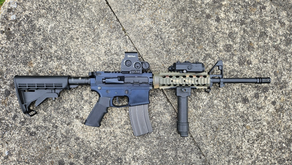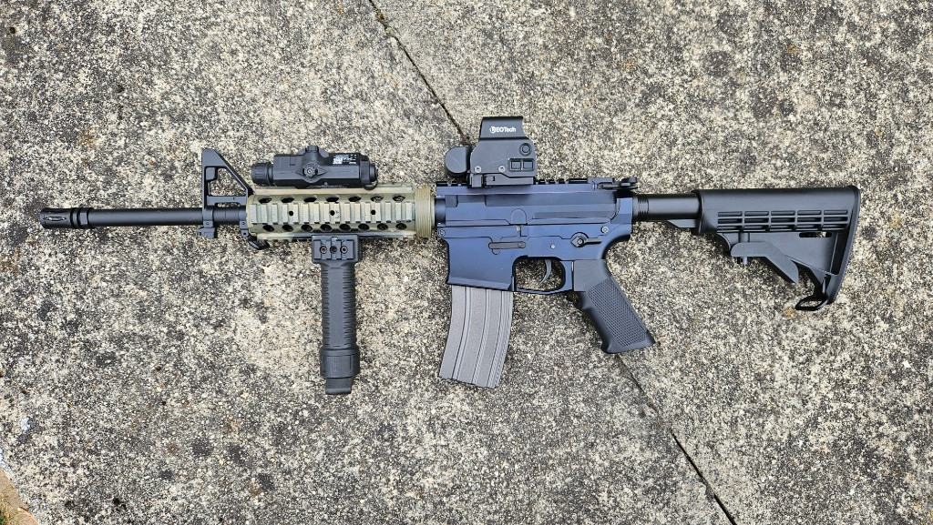 Zdravím, z důvodu nevyužití pouštím do světa svou custom stavěnou M4ku. Základem zbraně je CNC tělo od RetroArms. Ostatní vnější díly, jako je pažba, pažbička, předpažbí atd.. jsou od ICS. Uvnitř je mechabox a hop up komora od VFC, ocelová 18:1 kola, zátěžový motor. Vzduchotechniku pak tvoří kombinace dílů EpeS a SHS. Ke zbrani nechám i PEQ box a grippod. Kolimátor není součástí prodeje. V případě zájmu není problém zaslat detailnější fotky nebo video střelby.