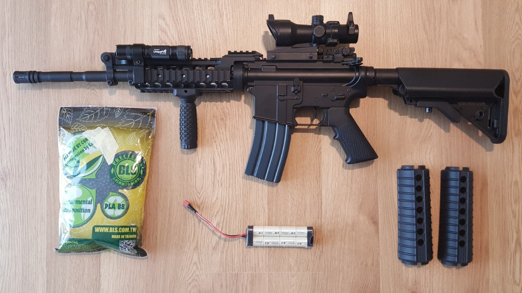 Prodám M4 RIS od Cymy, celokov. Zbraň po servisu. Upgrade vzduchotechniky. Zbraň má nový programovatelný mosfet od GATE NanoHARD. Ke zbrani ACOG kolimátor na opravu, LED svítílna, baterie, plastové předpažbí a pytel kulí.