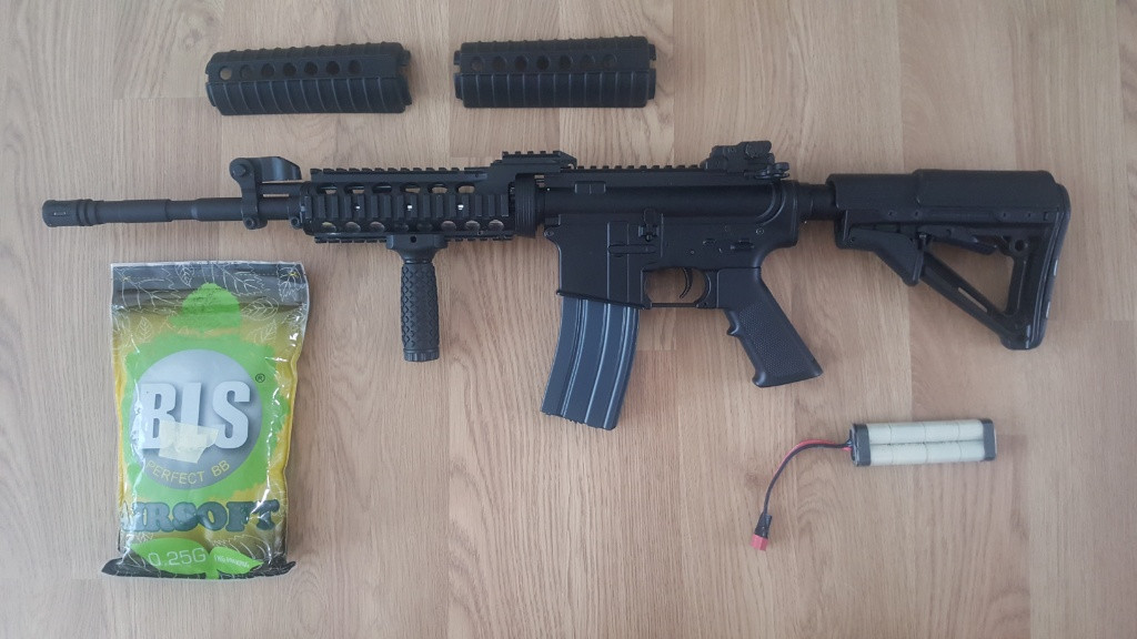 Prodám M4 RIS od Cymy, celokov. Zbraň po servisu. Upgrade vzduchotechniky. Zbraň má nový programovatelný mosfet od GATE NanoHARD. Pažba CTR s lícnicí LaRue RISR. Ke zbrani baterie, plastové předpažbí a pytel kulí.