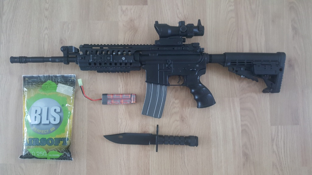 Prodám M4 S-System od Cymy. Celokov po servisu. Zbraň funguje bez problémů. Ke zbrani značková baterie VB Power, pytel kulí a plastový bajonet M9. Bez zaměřovače.